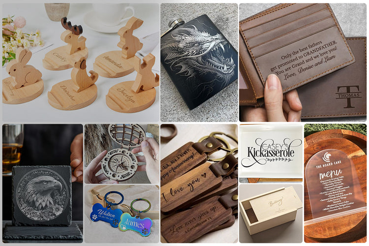 Pode ser gravado em madeira, papel, papel rascunho, papel kraft, acrílico, ardósia, cerâmica, vidro, metal revestido, borracha, silicone, couro, metal laqueado, plástico, bambu e outros materiais.