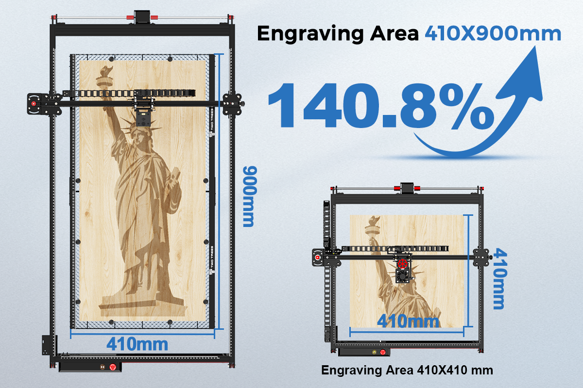 The expansion kit can extend the Y axis, making it themost cost-effective large-area laser engraving machine with a maximum expansion area of 410X900mm.