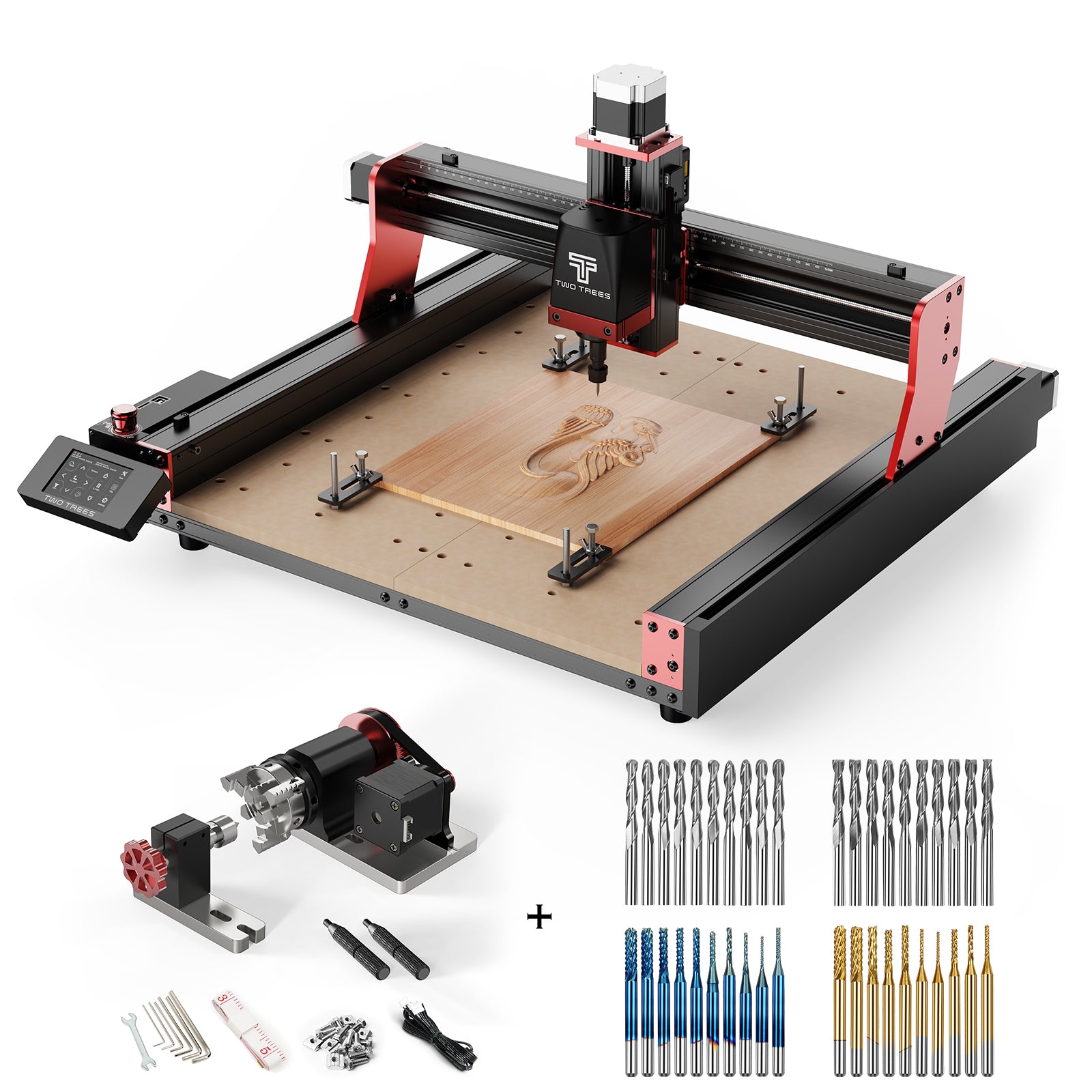 Twotrees TTC450 PRO CNC Router Machine + 4th Axis + End Mills