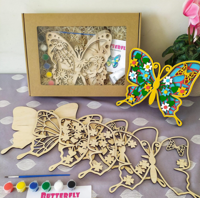 À tarde, abri o kit de escultura em madeira de borboletas com minha filha — e me dei conta de que eu mesma já tinha feito este kit antes, usando a TTS-55 Pro. Ela foi extremamente cuidadosa ao escolher as tintas e, enquanto pintava, disse que queria que essas borboletas "voassem para a primavera". Depois que terminamos, penduramos as borboletas pela casa, e parece que seguramos a primavera!