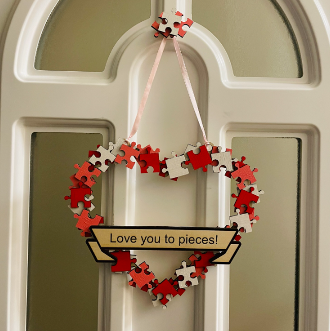 Enfeite de quebra-cabeça em forma de coração feito com minha filha